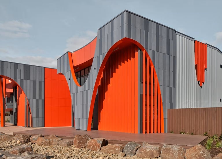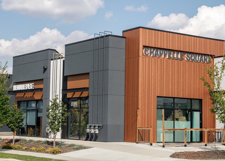 Lux Architectural wood-look metal cladding Attractive, weather-resistant walls for shops.